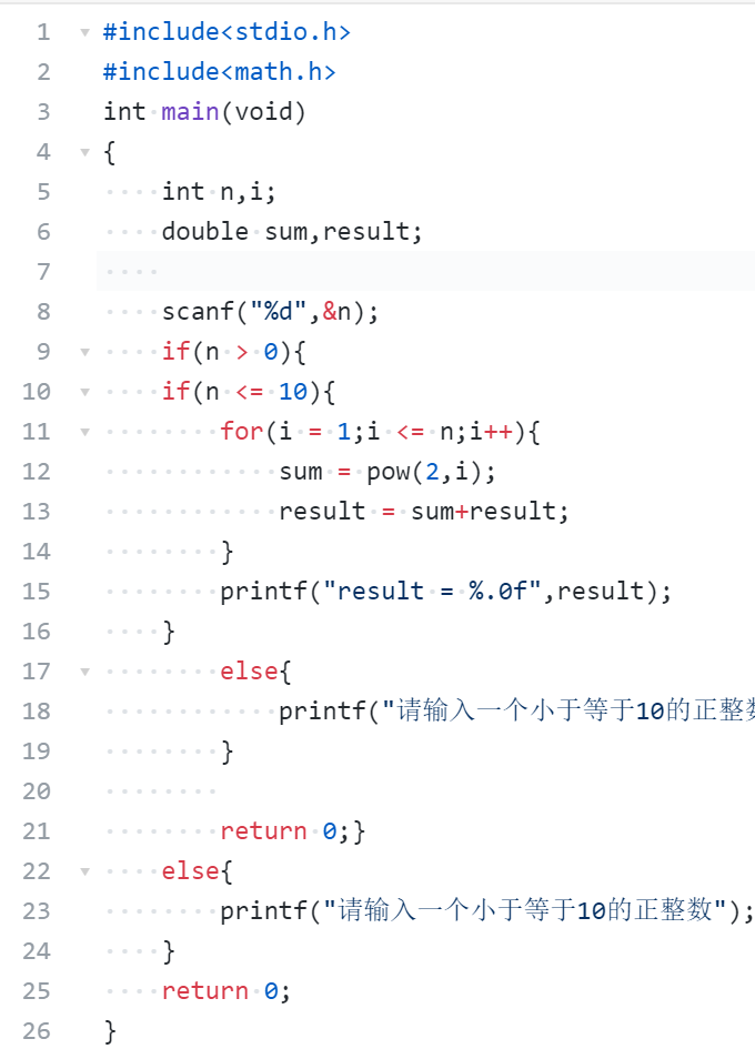 数据表达:整型变量n,i,双进度浮点型sum,result。