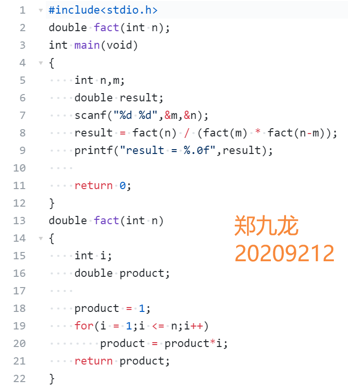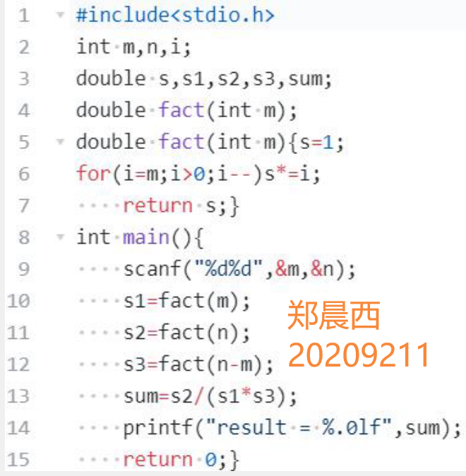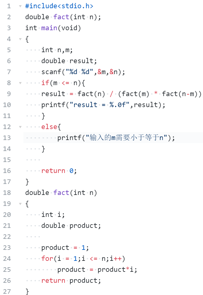 1. result = fact(n) / (fact(m) * fact(n-m))