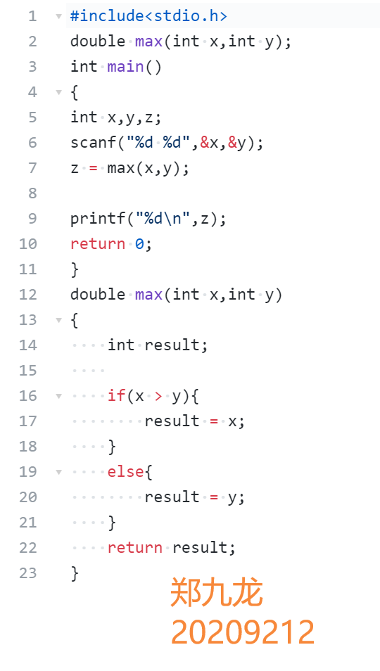 1. 该同学的代码比较简短,而我的比较繁长。说明函数我用的是最基础最“笨”的函数说明(好吧,我只会这个),同学的说明用到了我从没见过的形式,如“int num( int x,int y){ ruturn x>y? x:y;}”,。