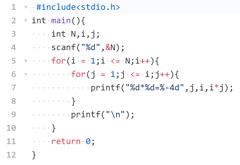 1.1题目:输入一位正整数N(1<=N<=9),输出从11到NN的部分口诀表。