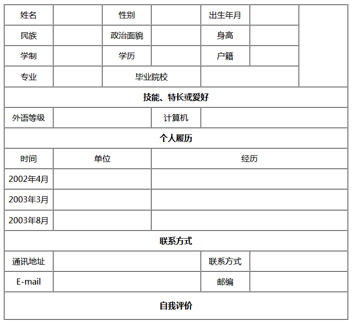 <td align="center" colspan="7"><b>个人履历</b></td>