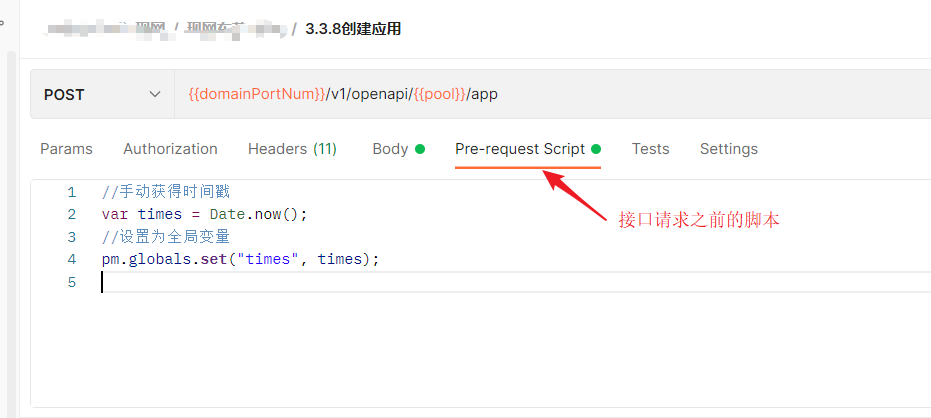 //手动获得时间戳 var times = Date.now(); //设置为全局变量 pm.globals.set("times", times);