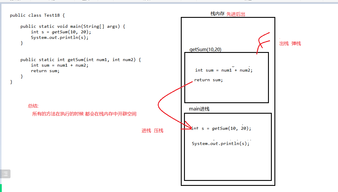 栈内存:先进后出(进栈/压栈 出栈/弹栈)