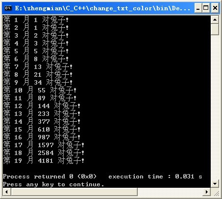 24 printf("第 %d 月 %d 对兔子!\n",month,sum);