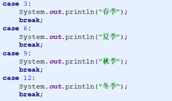需求:一年有12个月份,分属于春夏秋冬4个季节,键盘录入一个月份,请用程序实现判断该月份属于哪个季节,并输出。
