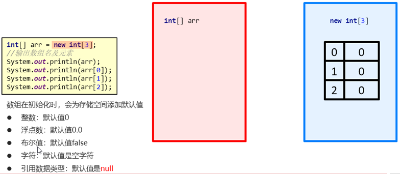 数组在初始化时,会为存储空间添加默认值