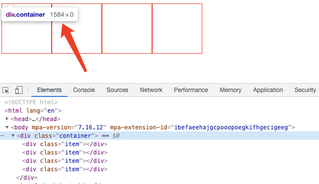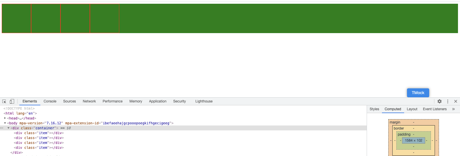 .container { background: green; } .container .item { border: 1px solid red; width: 100px; height: 100px; /* 子元素设置浮动 */ float: left; }