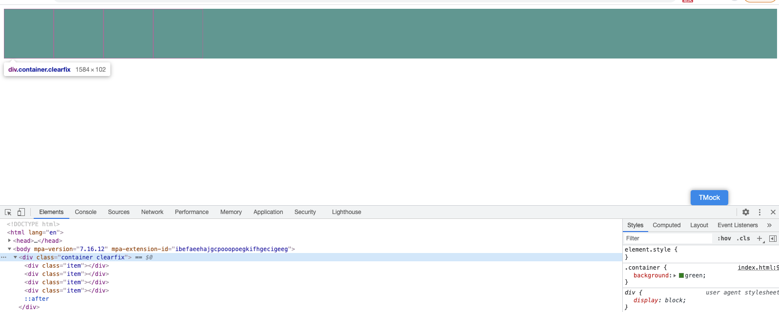 在我们以前,会使用到以下方法,使用清除浮动的伪元素clearfix::after.