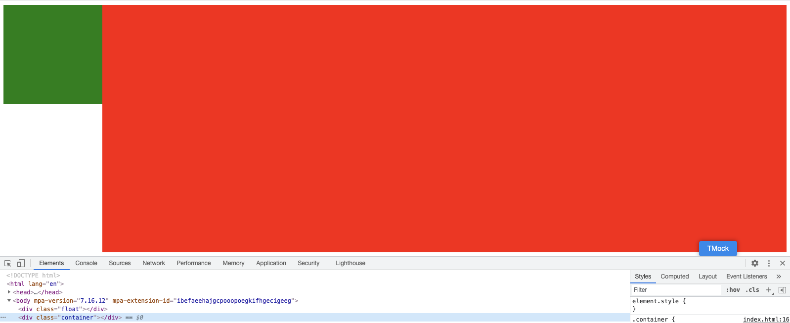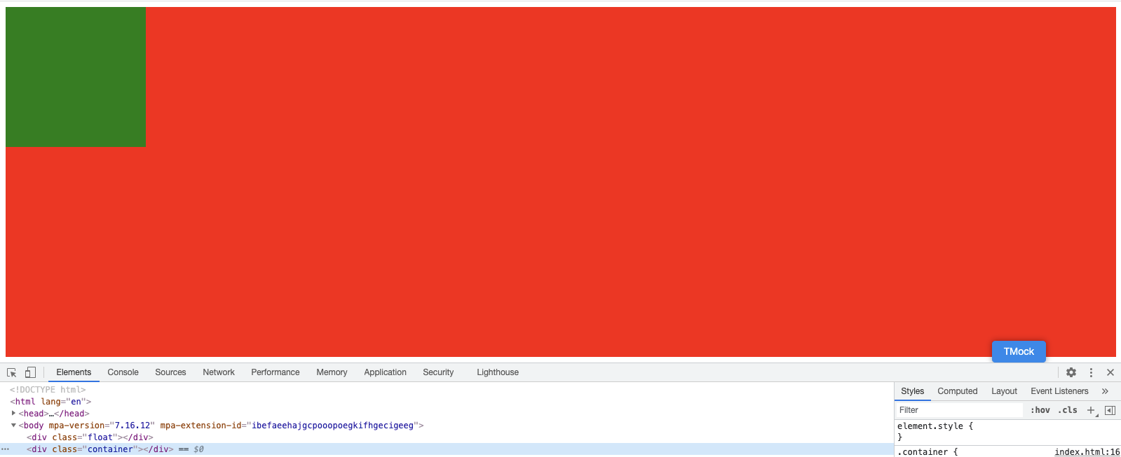 .float { width: 200px; height: 200px; background: green; /* 设置浮动 */ float: left; } .container {