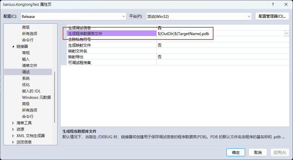 Visual Studio中开启生成pdb文件
