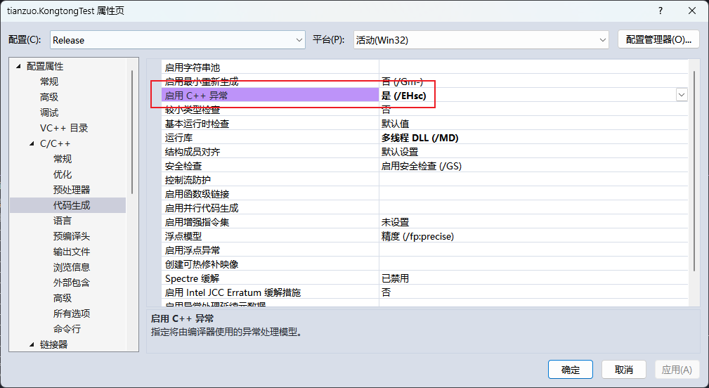Visual Studio中开启C++异常检测