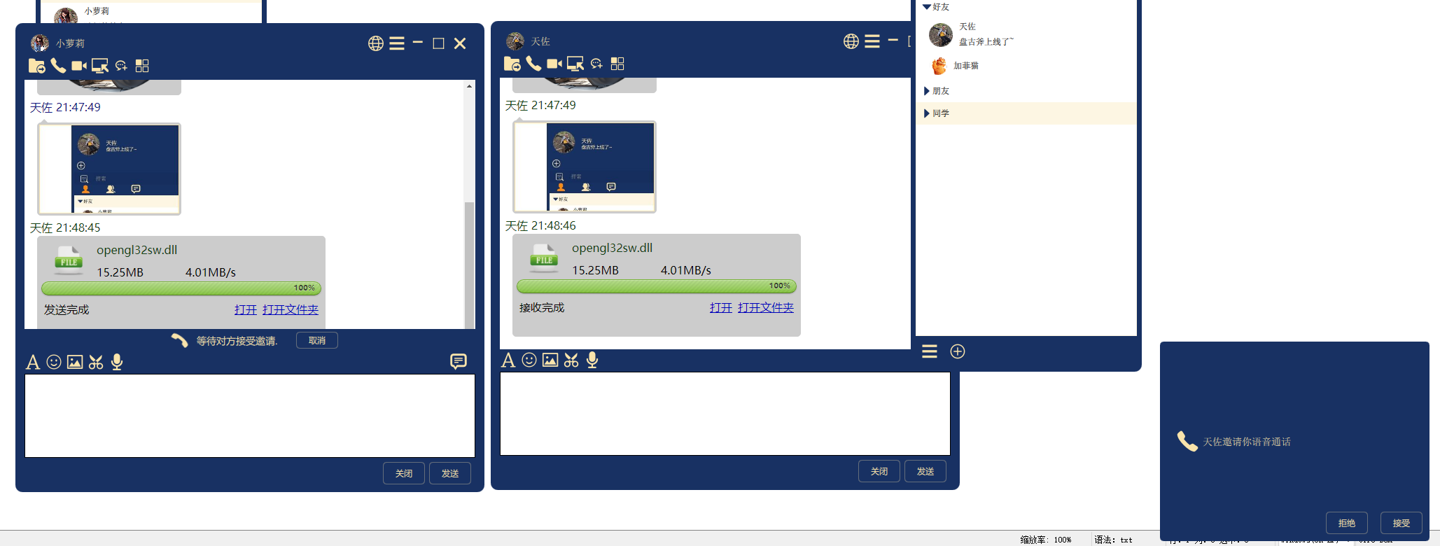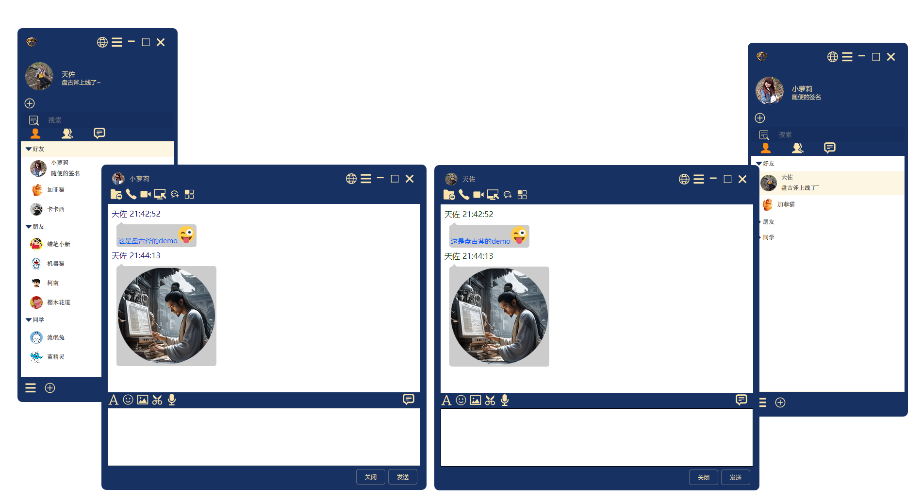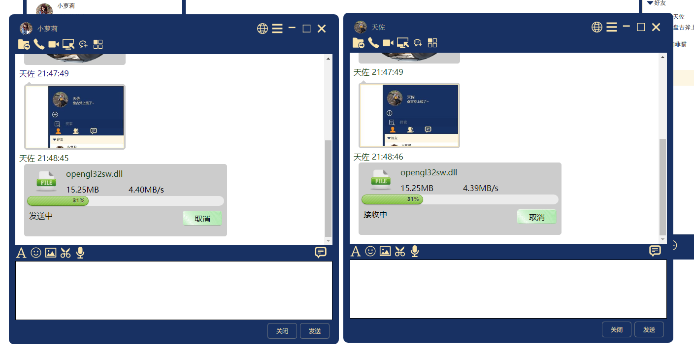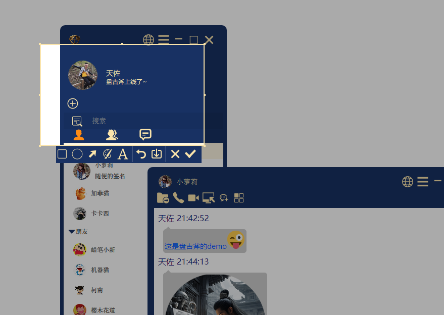 - 🪢 聊天数据点对点加密,自主研发IM协议,网络库使用'天佐.追日靴'软件开发工具包