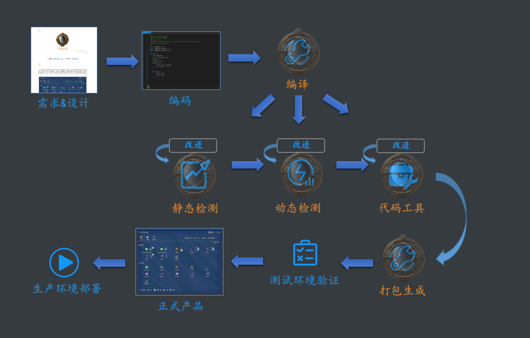 天佐.昆仑镜 强大的本地构建工具, 提供给项目全方位的静态检测, 动态检测, 代码工具以及各种便利的插件工具, 通过词法分析、语法分析、控制流、数据流分析、内存检测、代码覆盖率、热点函数检测等技术对程序代码进行扫描,验证代码是否满足规范性、安全性、可靠性、可维护性等指标. 根据分析结果对代码进行深度优化. 提升代码质量, 增强产品健壮性.