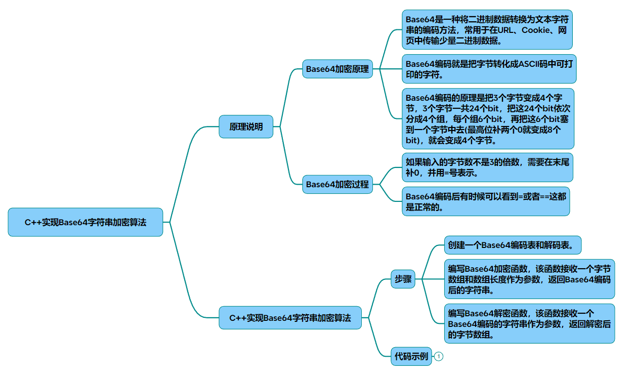 以下是C++实现的Base64字符串加密算法及其原理说明,综合了多个技术文档的核心要点: