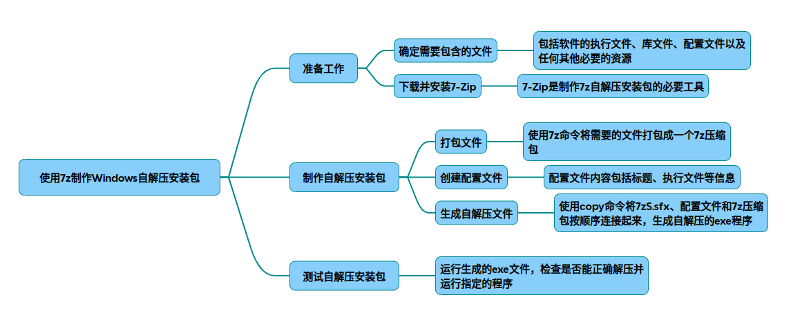 以下是使用7-Zip制作Windows自解压安装包的具体方法和实现步骤,综合了多种实现方案和注意事项: