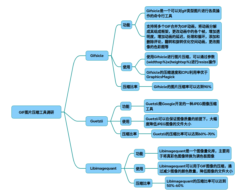 以下为针对 GIFsicle、Guetzli、LibimageQuant 的技术调研报告,包含原理分析、压缩率对比、代码实现及参数优化策略: