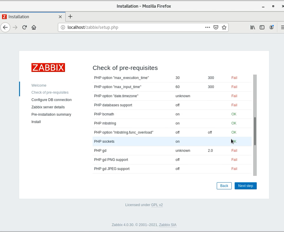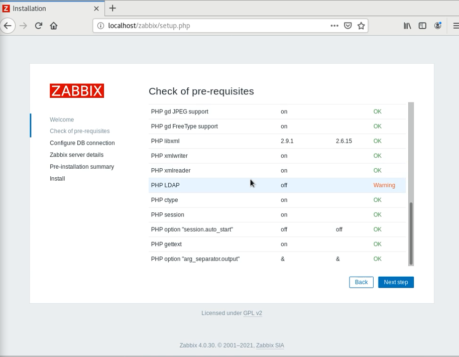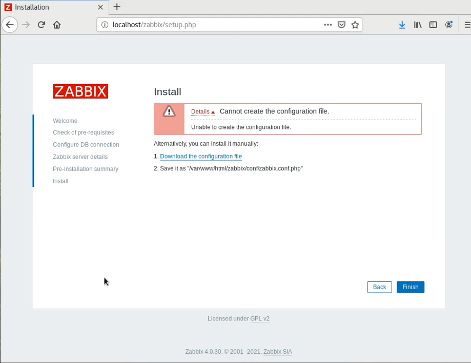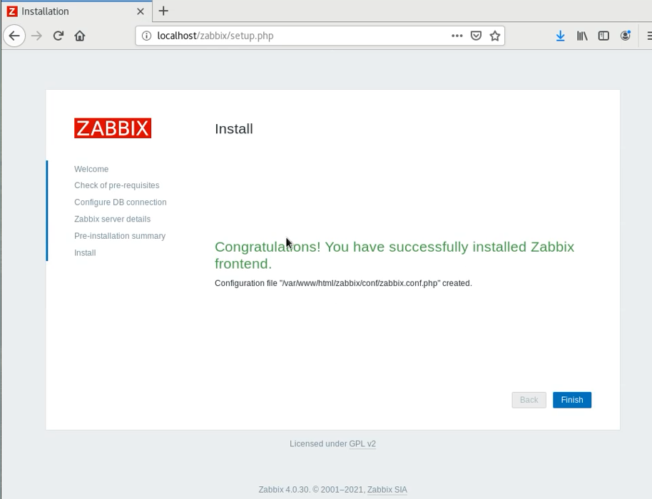 cp zabbix.conf.php /var/www/html/zabbix/conf/ -a