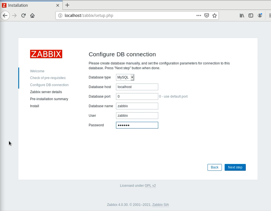mysql -uzabbix -pzabbix zabbix < schema.sql