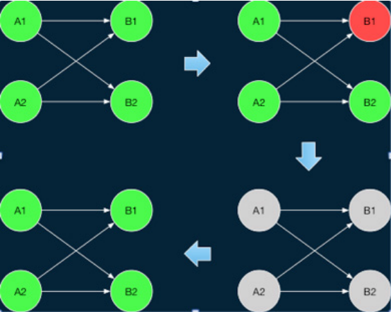 Task 执行错误:Flink 提供了多种不同的错误恢复策略。如下图所示,第一种策略是 Restart-all,即直接重启所有的 Task。对于 Flink 的流任务,由于 Flink 提供了 Checkpoint 机制,因此当任务重启后可以直接从上次的Checkpoint 开始继续执行。因此这种方式更适合于流作业。