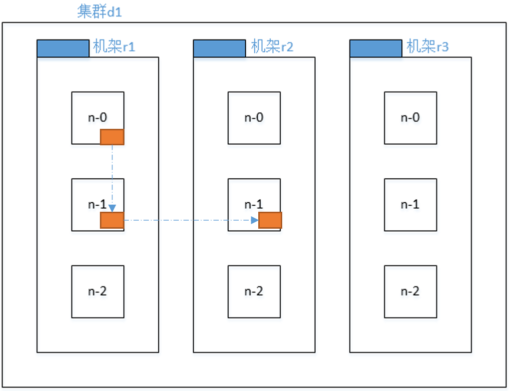 对于常见情况,当复制因子为3时,HDFS的放置策略是将一个副本放在本地机架中的一个节点上,另一个放在本地机架中的另一个节点上,最后一个放在不同机架中的另一个节点上。