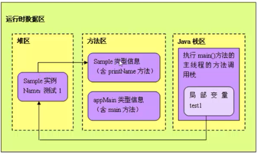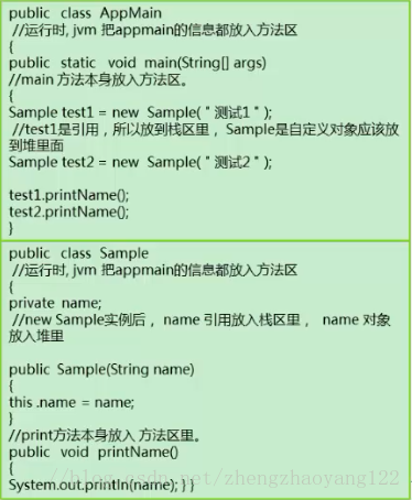 【2】方法区:①、保存装载的类信息(类型的常量池,字段、方法信息,方法字节码); ②、通常和永久区(Perm)关联在一起;