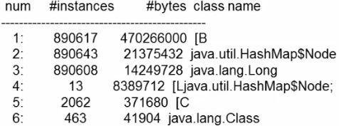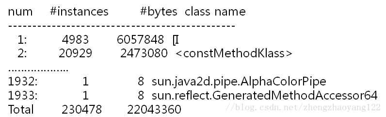 【3】jmap:生成 Java应用程序的堆快照和对象的统计信息:jmap -histo 2972 >c:/s.txt