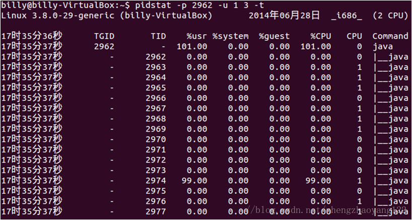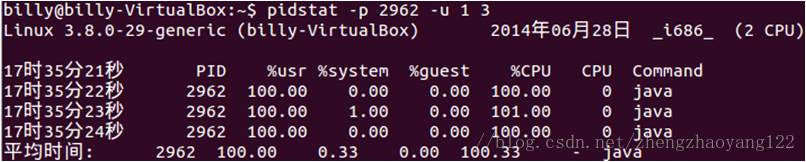 【2】pidstat:细致观察进程(监控CPU、IO、内存)【安装:sudo apt-get install sysstat 】-p指定进程 -u监控CPU 每秒采样 一共3次;