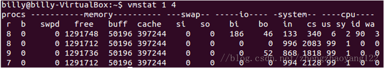 【2】vmstat:可以统计系统的CPU,内存,swap,io等情况。[vmstat 采样频率 采样次数]。system:表示切换频率。