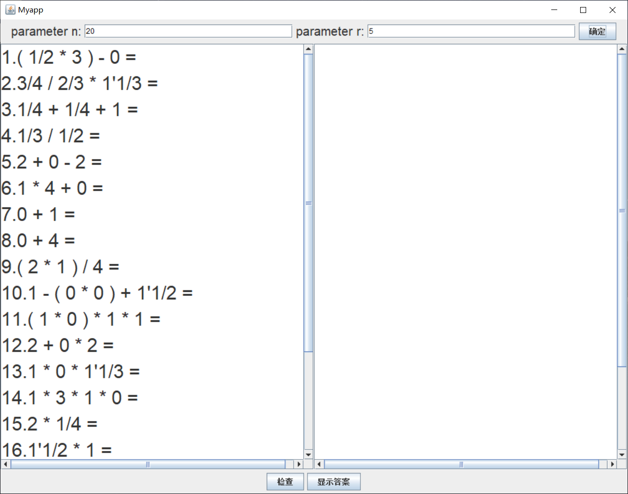 在右边框中作答,并检查答案(答案数量小于题目时则视为未作答,不记录错误)