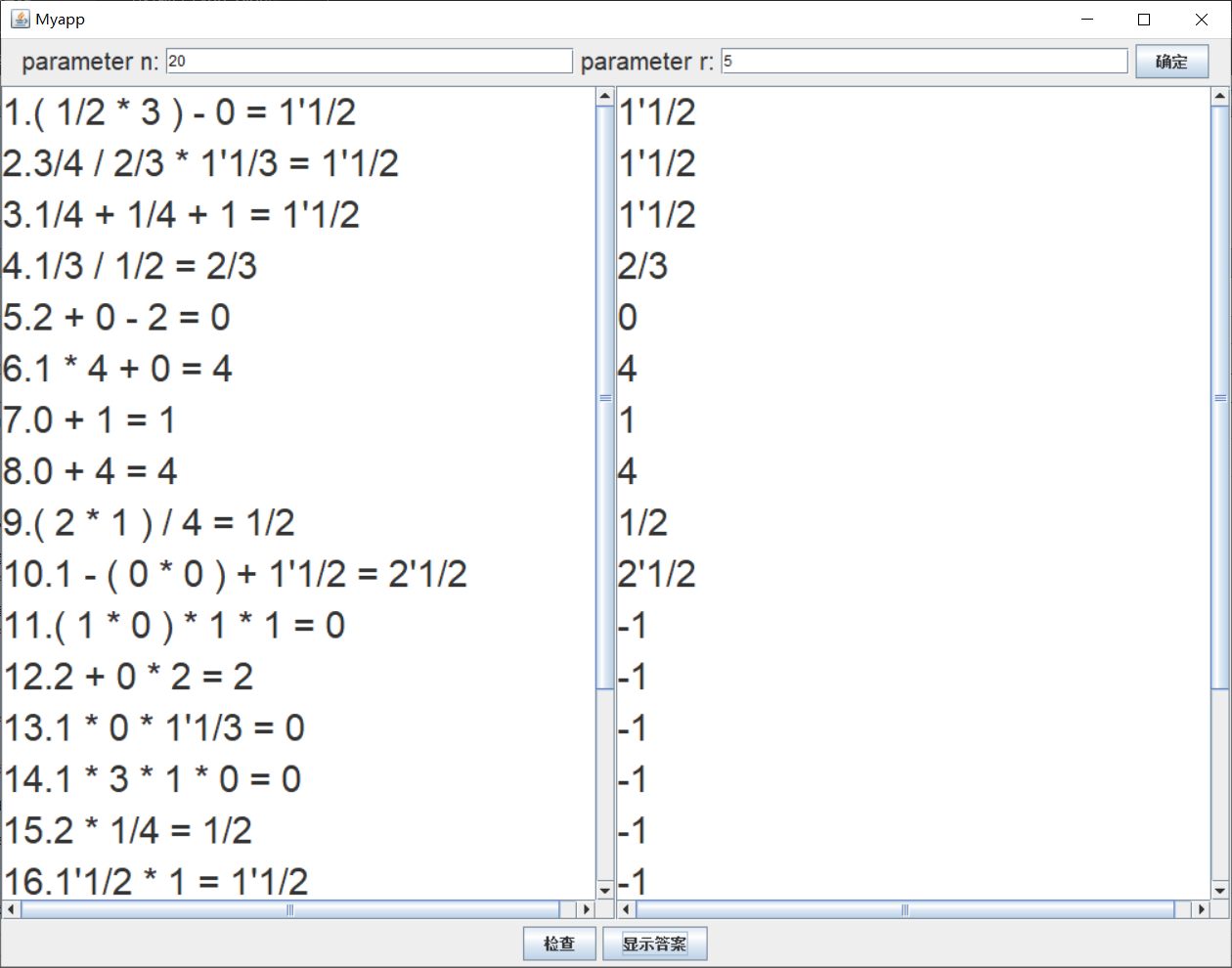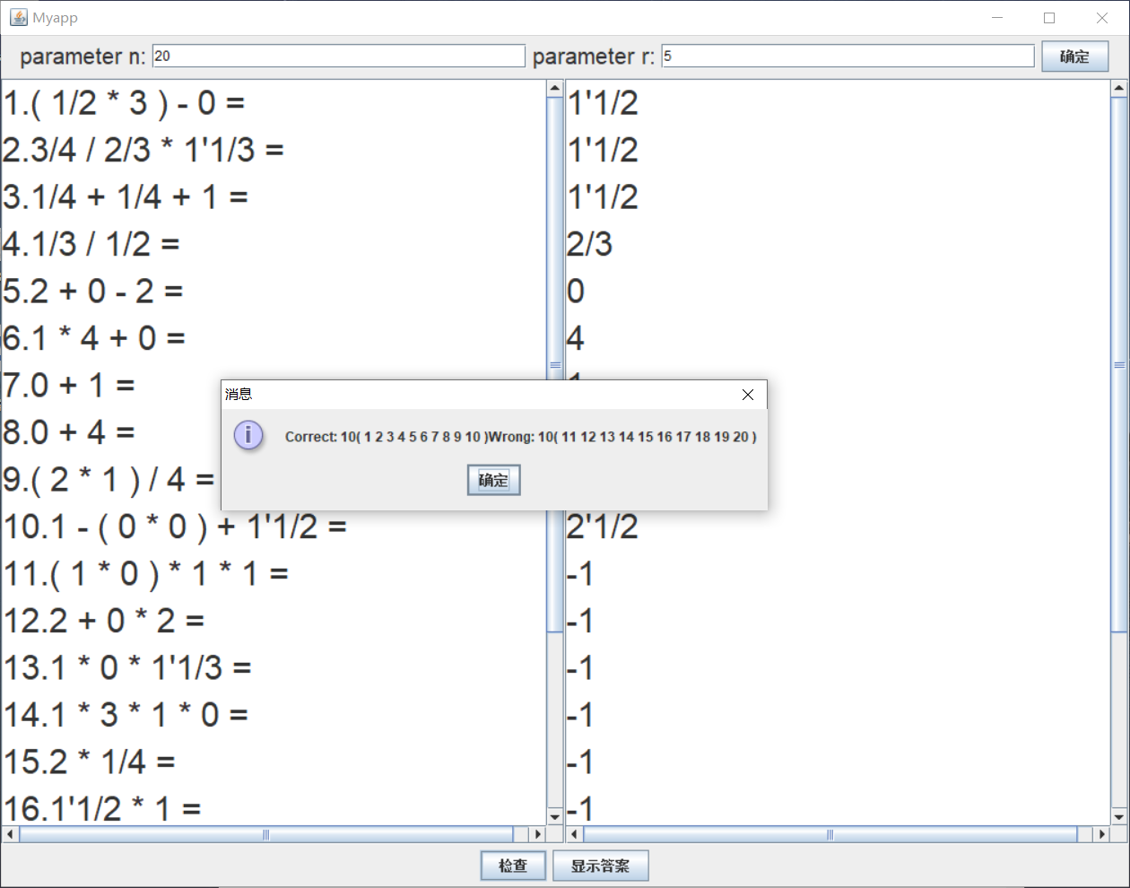 前十道题手动计算并输入,后十道题输入-1,可以看出程序是正确的
