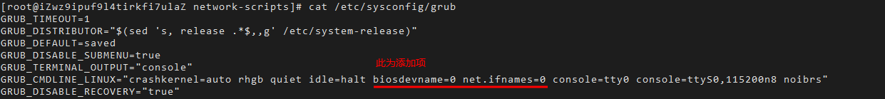 1 cd/etc/sysconfig/network-scripts/ #进入网卡文件目录 2 mv ifcfg-eno16777736 ifcfg-eth0 #重命名网卡名称