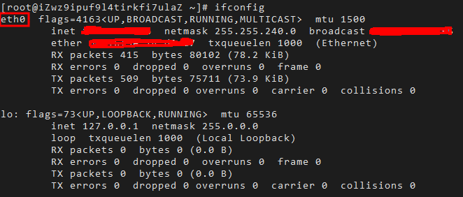 1 reboot #重启系统 2 ifconfig #重启后查看网卡信息 3 4 yum install net-tools -y #如果没有找到ifconfig命令,需要安装net-tools包