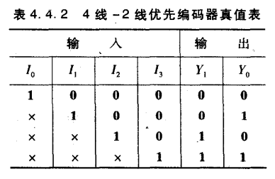 从真值表我们可以看出,I3优先级最高,当I3为1时,不论其他输入端为何值,都输出11;I0优先级最低。