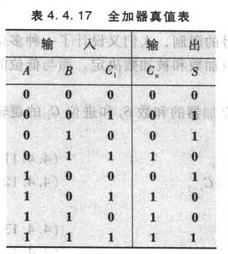 全加器是考虑了低位进位的加法器,其真值表如下所示。