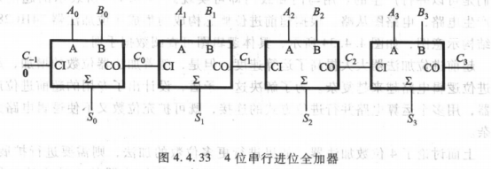 我们把全加器串联起来,就组成了多位加法器,如下图所示。
