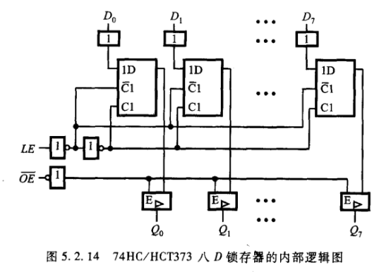 当锁存使能信号LE=1时,允许所有D锁存器动作,由D0-D7更新他们的状态。