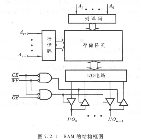 A为n根地址线,I/O为m根数据线。其容量为2n * m