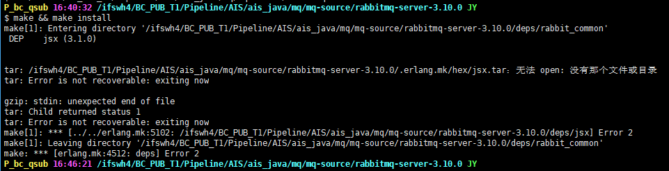 export JAVA_HOME=/xxxx/ais_java/jdk1.8.0_251 export ERLANG_HOME=/xxxx/ais_java/mq/erlang export PATH=${ERLANG_HOME}/bin:$PATH