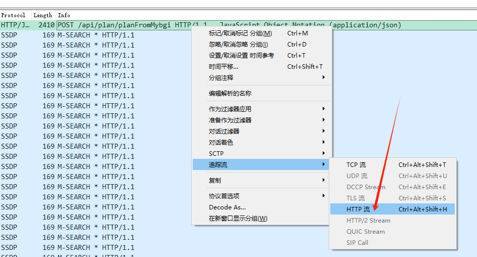然后,想办法在客户端查看发出的报文是什么样的。想到了使用wireshark抓包的方式