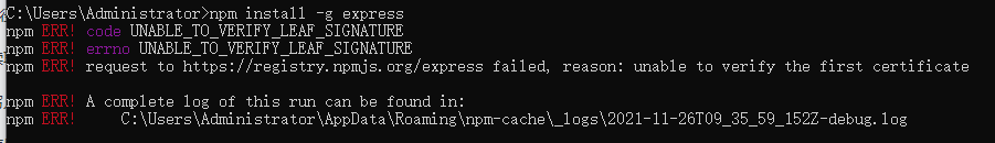 npm ERR! code UNABLE_TO_VERIFY_LEAF_SIGNATURE