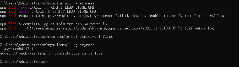 用完之后恢复:npm config set strict-ssl true