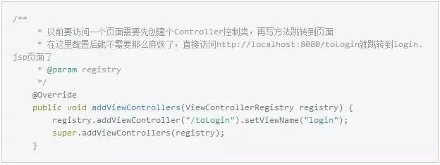 以前写SpringMVC的时候,如果需要访问一个页面,必须要写Controller类,然后再写一个方法跳转到页面,感觉好麻烦,其实重写WebMvcConfigurerAdapter中的addViewControllers方法即可达到效果了