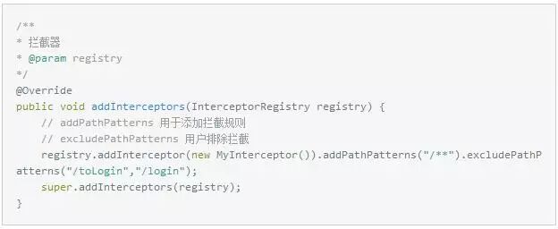 接着,重写WebMvcConfigurerAdapter中的addInterceptors方法如下:
