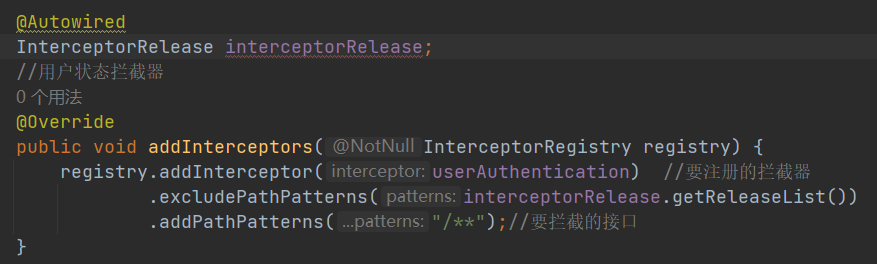 registry.addInterceptor(userAuthentication) //要注册的拦截器
