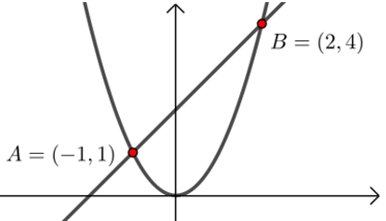 \({\color{Red}{ Eg }}\) 函数\(f(x)=x^2\)在区间\([-1 ,2]\)上的平均变化率为\(\dfrac{\Delta y}{\Delta x}=\dfrac{f(2)-f(-1)}{2-(-1)}=\dfrac{4-1}{3}=1\).