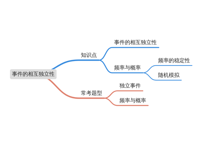 \(n\)个事件\(A_1\),\(A_2\),… ,\(A_n\)两两独立时,等式\(P(A_1 A_2\cdot \cdot \cdot A_n )=P(A_1 )P(A_2 )\cdot \cdot \cdot P(A_n)\)成立.