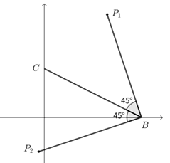 ③ 看到\(∠PBC=45°\),容易想到构造等腰直角三角形,以求点\(P_1\)为例,