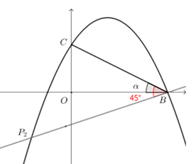 ② 设当\(P_2\)点在\(x\)轴下方抛物线上时,设\(∠P_2 BC=45^\circ\),\(∠OBC=α\),