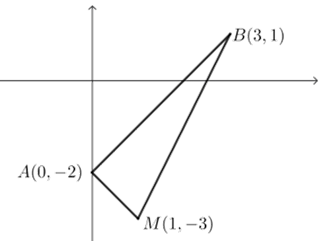 从已知条件出发,可尝试利用两点距离公式求出三条线段\(AB\)、\(AM\)、\(BM\)的长度,看看是否能确定它是个直角三角形;或观察三个点的坐标特点,会不会有一些特殊角度等;