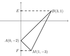 第二问: 由于点\(M\)、\(A\)、\(B\)是确定,则求\(∠ABM\)的正切值,完全由这三点确定,把图象简化为下图;